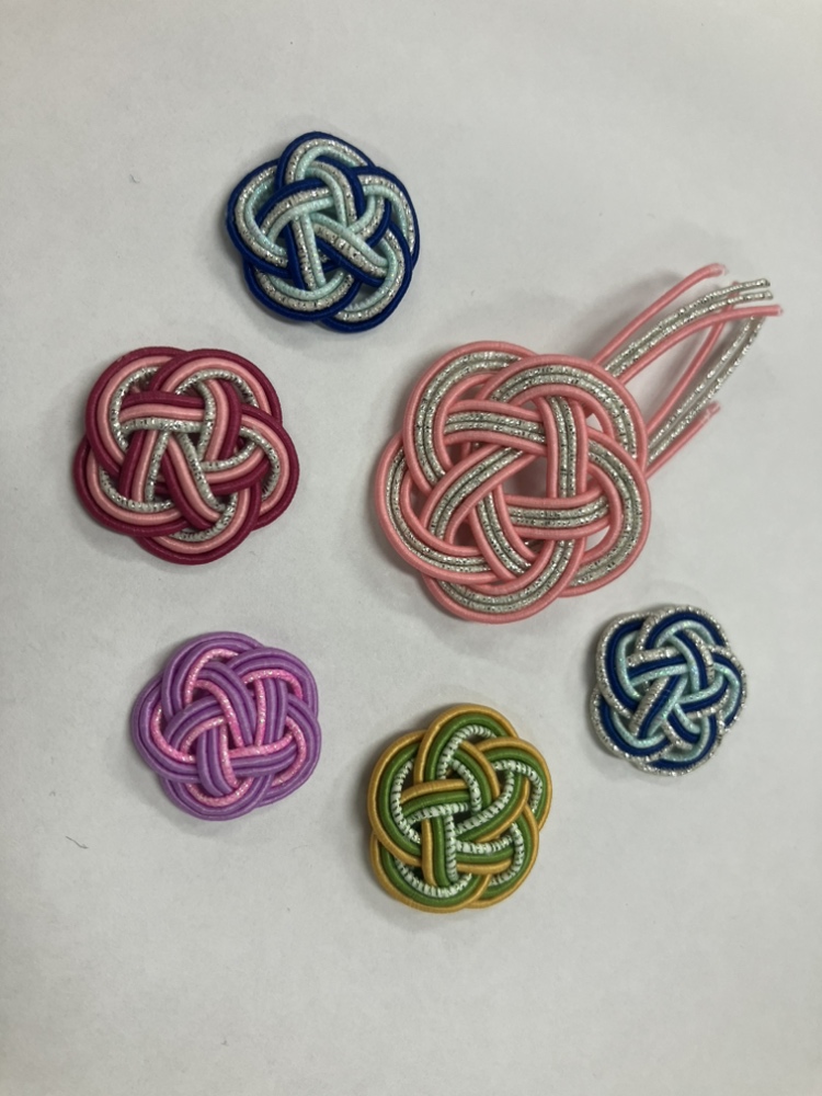その間、友人に教えてもらった水引の練習をしていたのですが、母から「どうせ作るなら帯留めを作ってほしい」と頼まれ、ブローチや帯留め、チャーム作りをしていました。